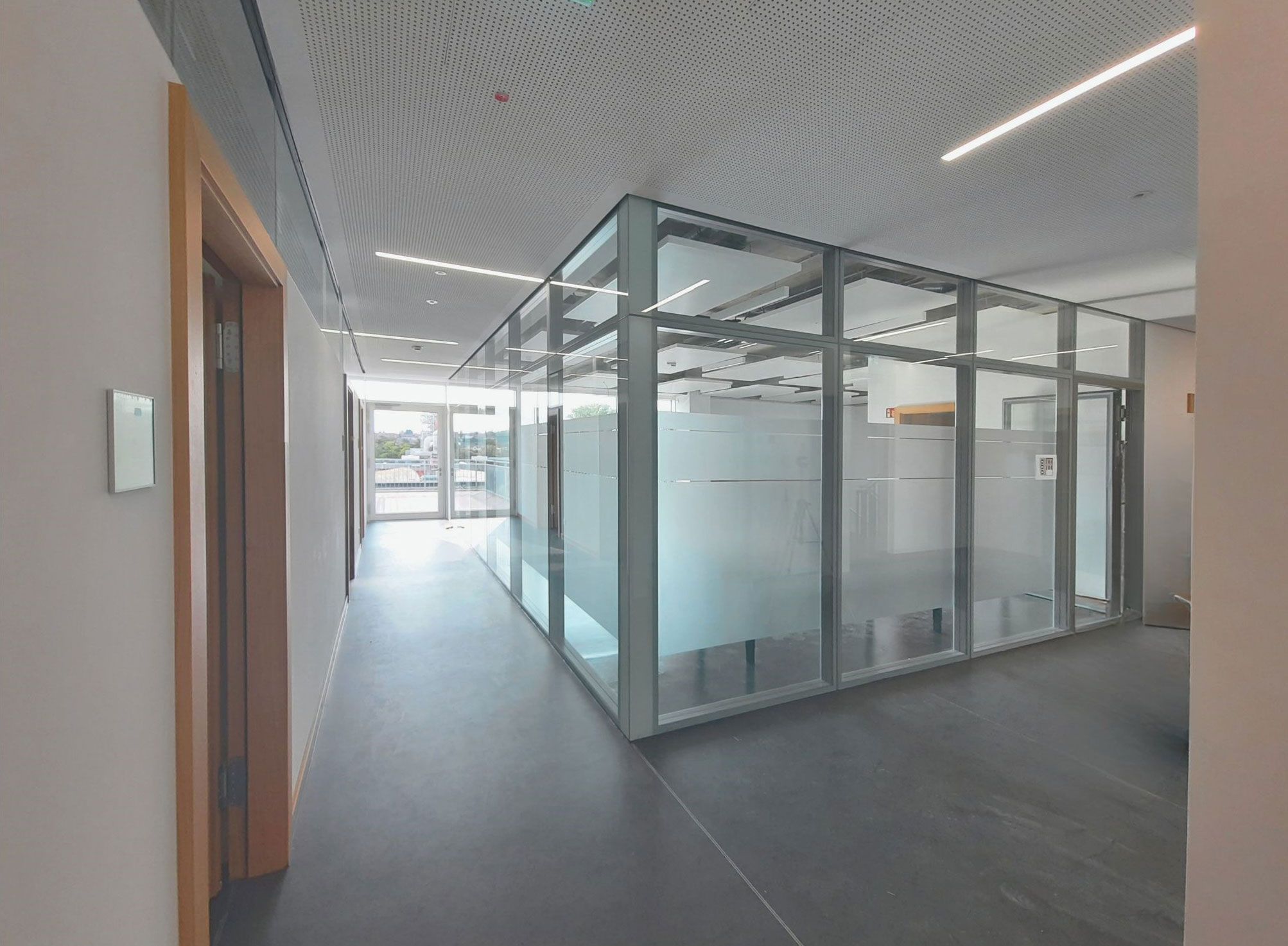 Eine Nutzungsflexibilität wird durch eine Rasterung der Fassade und die Möglichkeit Trockenbauwände an die Fassadenpfosten anzuschließen erzielt. Das Ausbauraster beträgt 1,50 m. Durch geringe Eingriffe können somit die Zimmerzuschnitte geändert werden. Das Raumprogramm ist nach mehreren Abstimmungen mit dem Nutzer für die derzeitigen Anforderungen voll umfänglich und nachgewiesen. Einem möglichen Erweiterungsbedarf der Stadtentwässerung wird durch Bereitstellung von zwei Reservebüros mit je 1 AP und drei Reservebüros mit je 2 AP Rechnung getragen. Ein zusätzliches Erweiterungspotential stellt die mögliche Aufstockung im Westen des Casinos im 3. Obergeschoss dar.