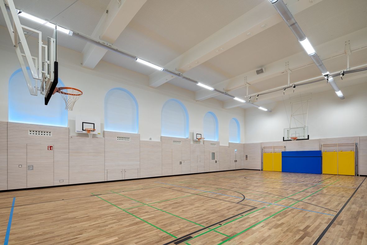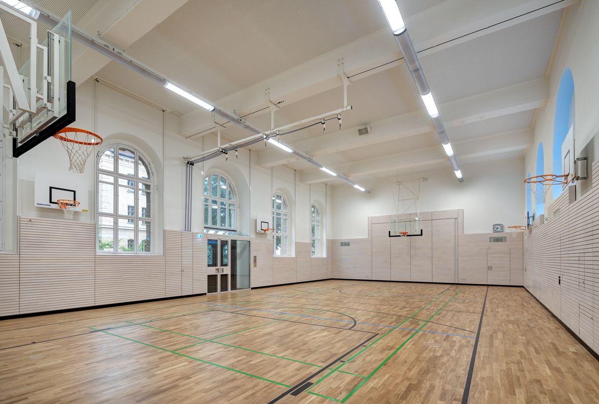 Die Sanierung der Turnhallen war während des laufenden Schulbetriebs durchzuführen.