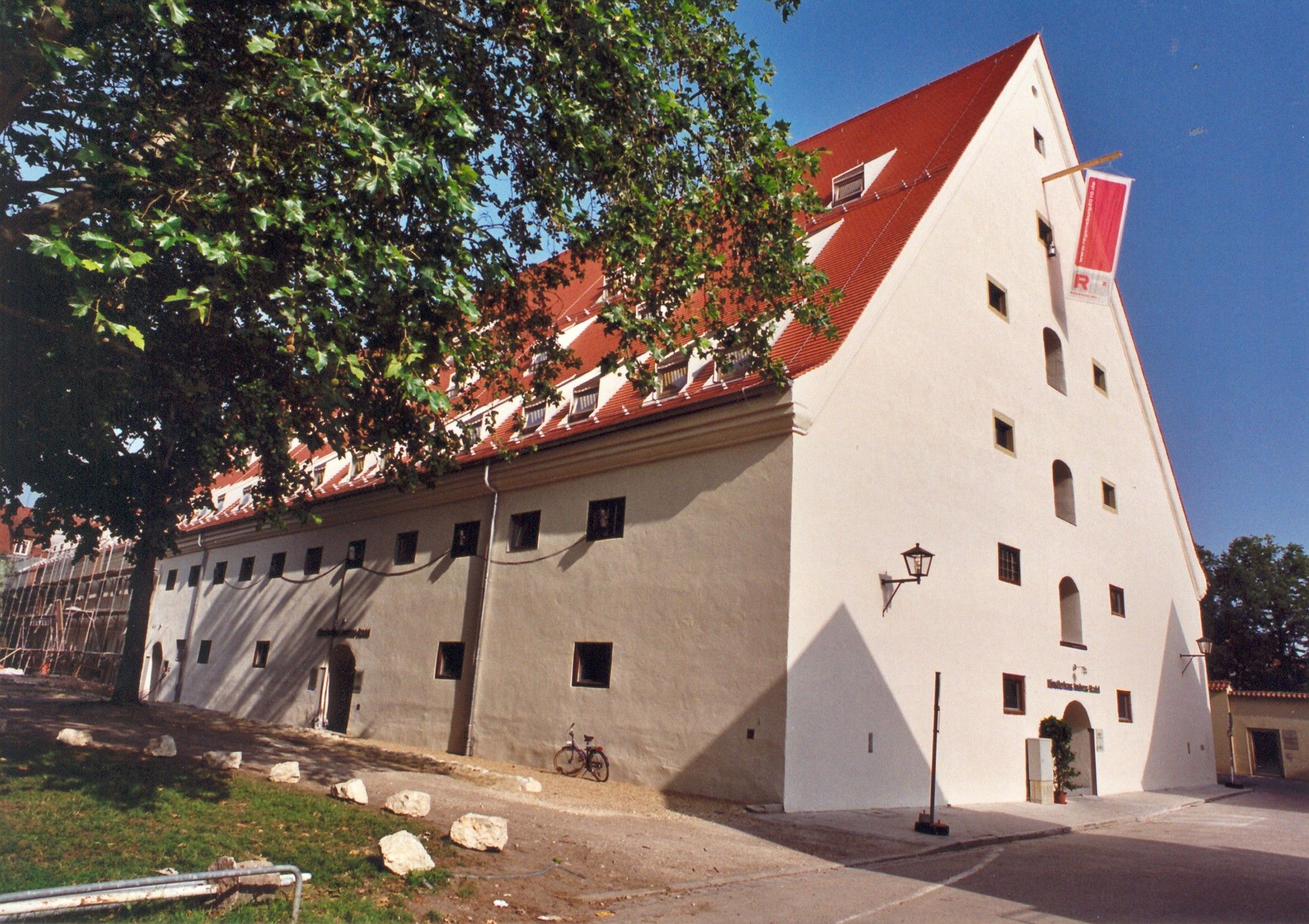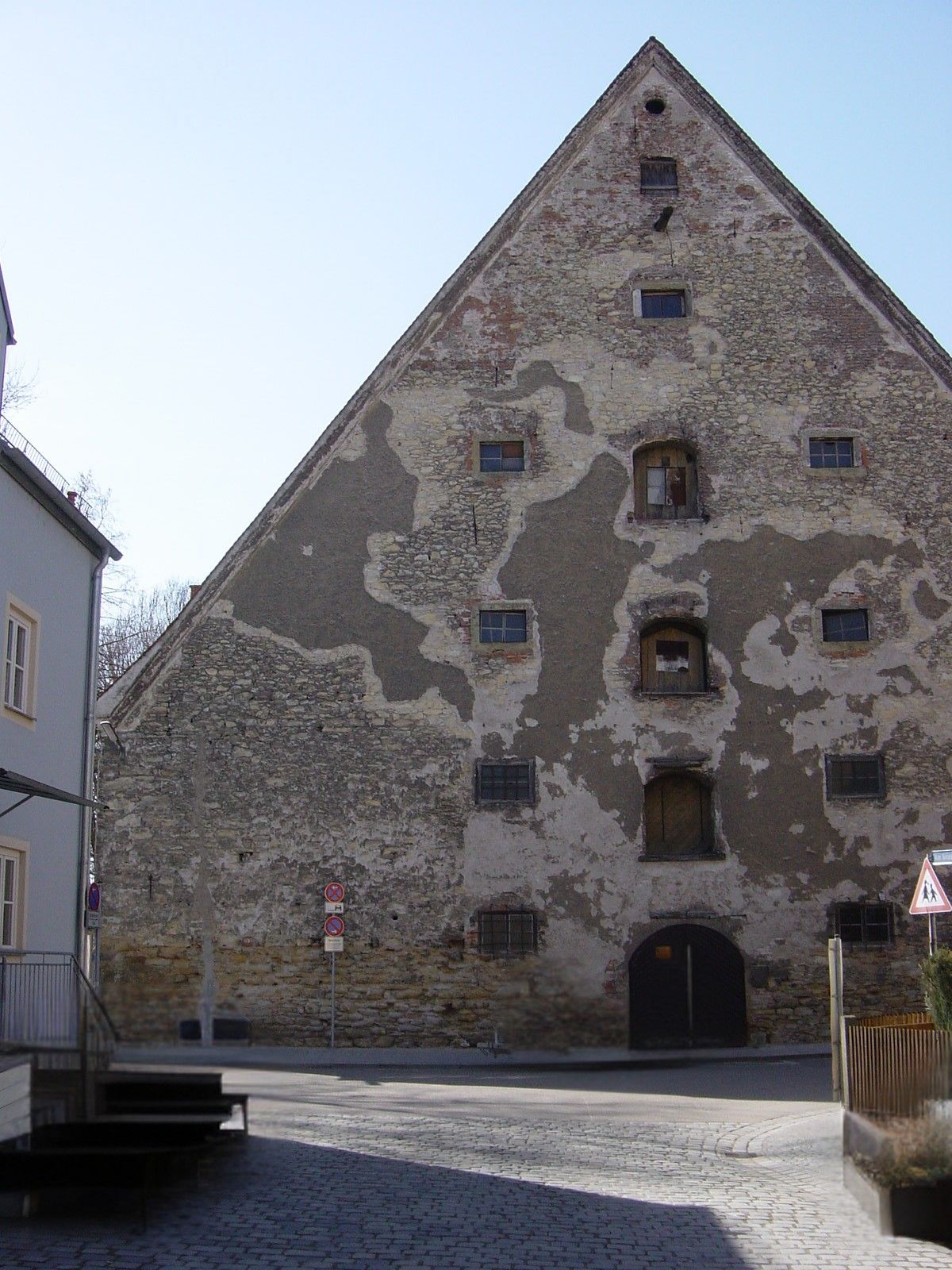Der Andreasstadel ist das älteste komplett erhaltene Profangebäude in Stadt am Hof. Mit seiner dreischiffigen, zweigeschossigen Holzkonstruktion im EG und 1. OG und dem hohen dreigeschossigen Speicher beherrscht der Salzstadel sowohl die Bebauung, als auch die Ansicht Stadtamhofs. Bis in das frühe 19. Jh. erfüllte der Stadel seine Aufgabe als Salzniederlege für den Handel in die Oberpfalz und nach Franken. Nach 1860 wurde der Stadel dann geteilt und verkauft.