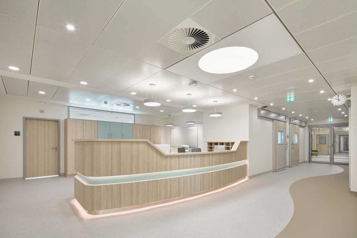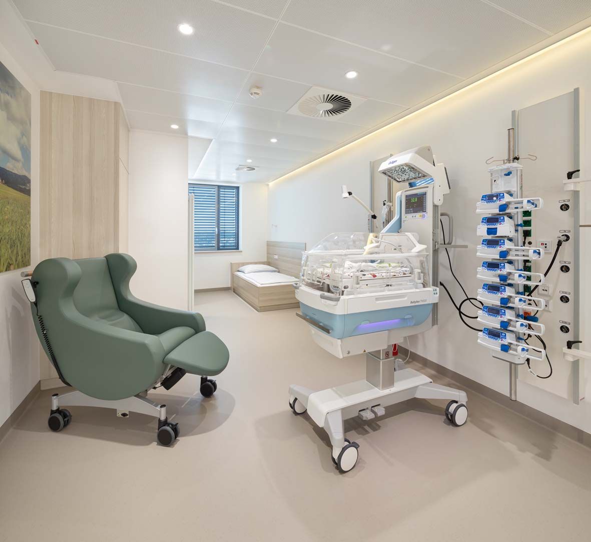 Der Gebäudekomplex des Klinikums Deggendorf besteht aus einem 5-geschossigen T-förmigen Pflegegebäude und einem 3-geschossigen Sockelgeschoss mit Untersuchungs- und Behandlungsräumen, Technik und Versorgungsflächen. Zusätzlich wurde das Gebäude durch neuere Anbauten für Krankenpflegeschule, Dialysezentrum und medizinische Klinik erweitert. Der Neubau der Neonatologie ist als Aufstockung des nördlich gerichteten Pflegetrakts im 6. Obergeschoss direkt über der Entbindungsstation geplant. Die bestehende Neonatologie wird um vier Betten, auf zwölf Betten erweitert. Teilweise erhalten die Zimmer Übernachtungsmöglichkeiten mit kleinen Nasszellen für die Eltern. Drei Zimmer werden durch vorgelagerte Schleusen als Isolierzimmer vorgesehen.