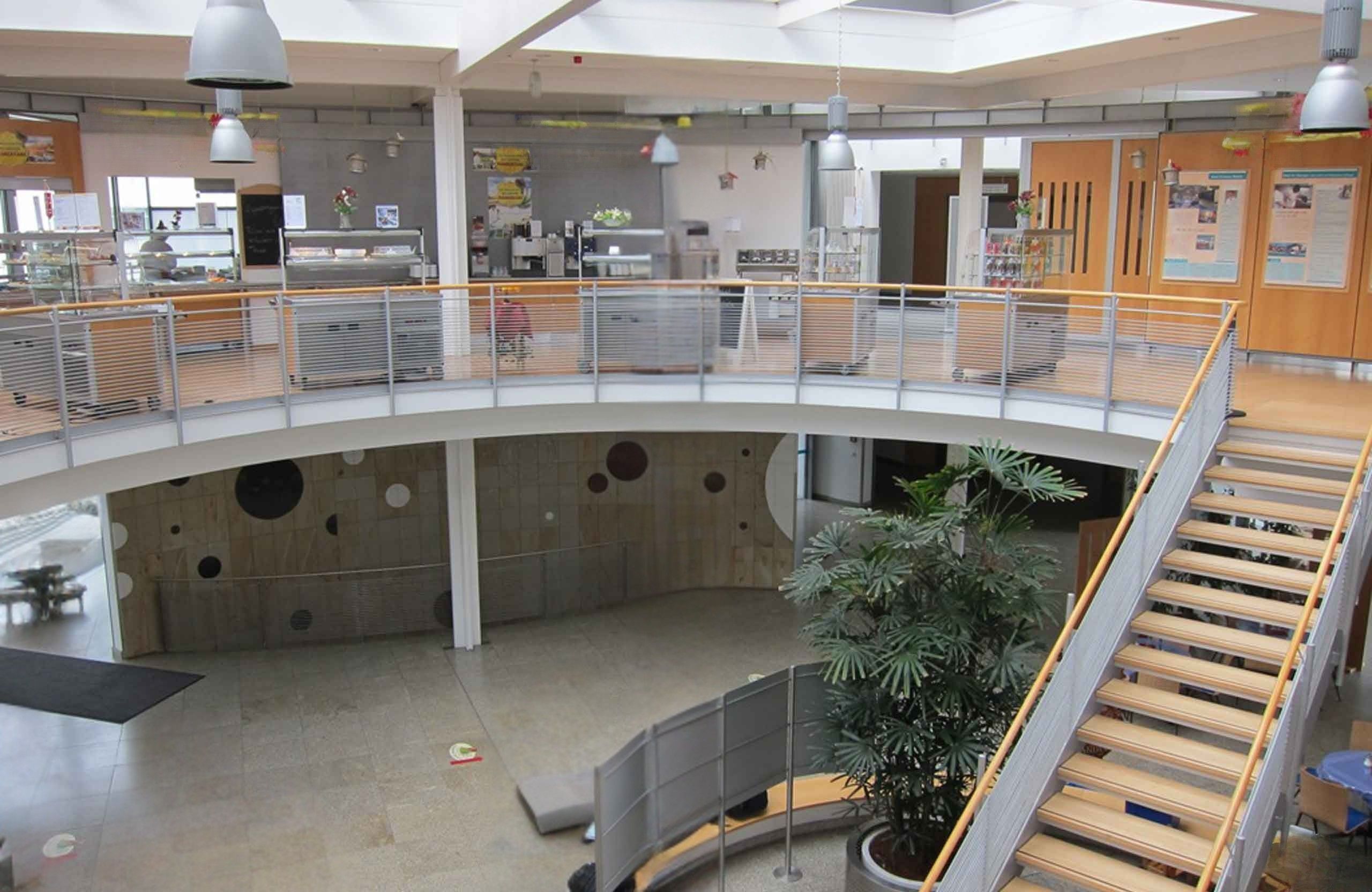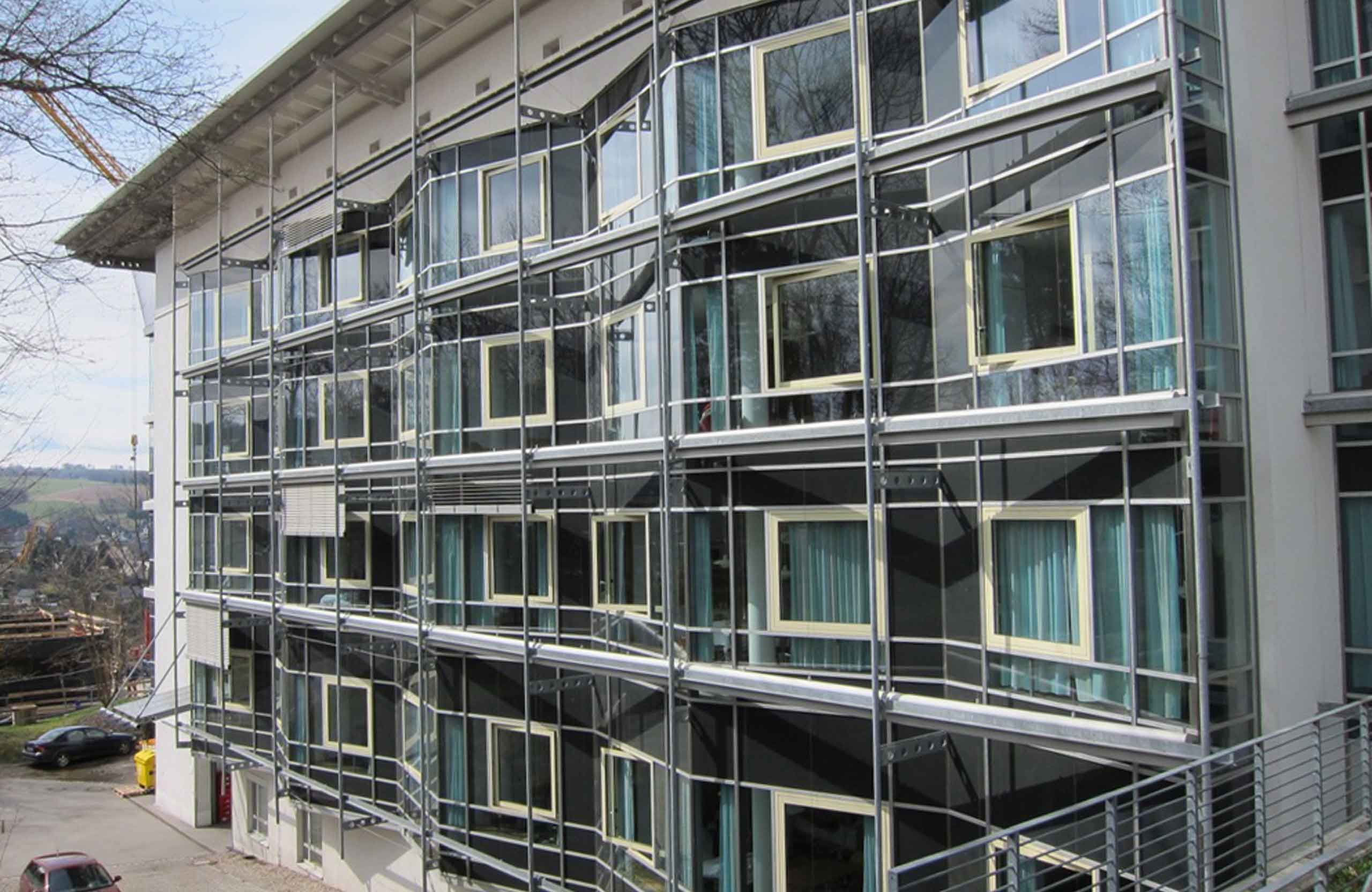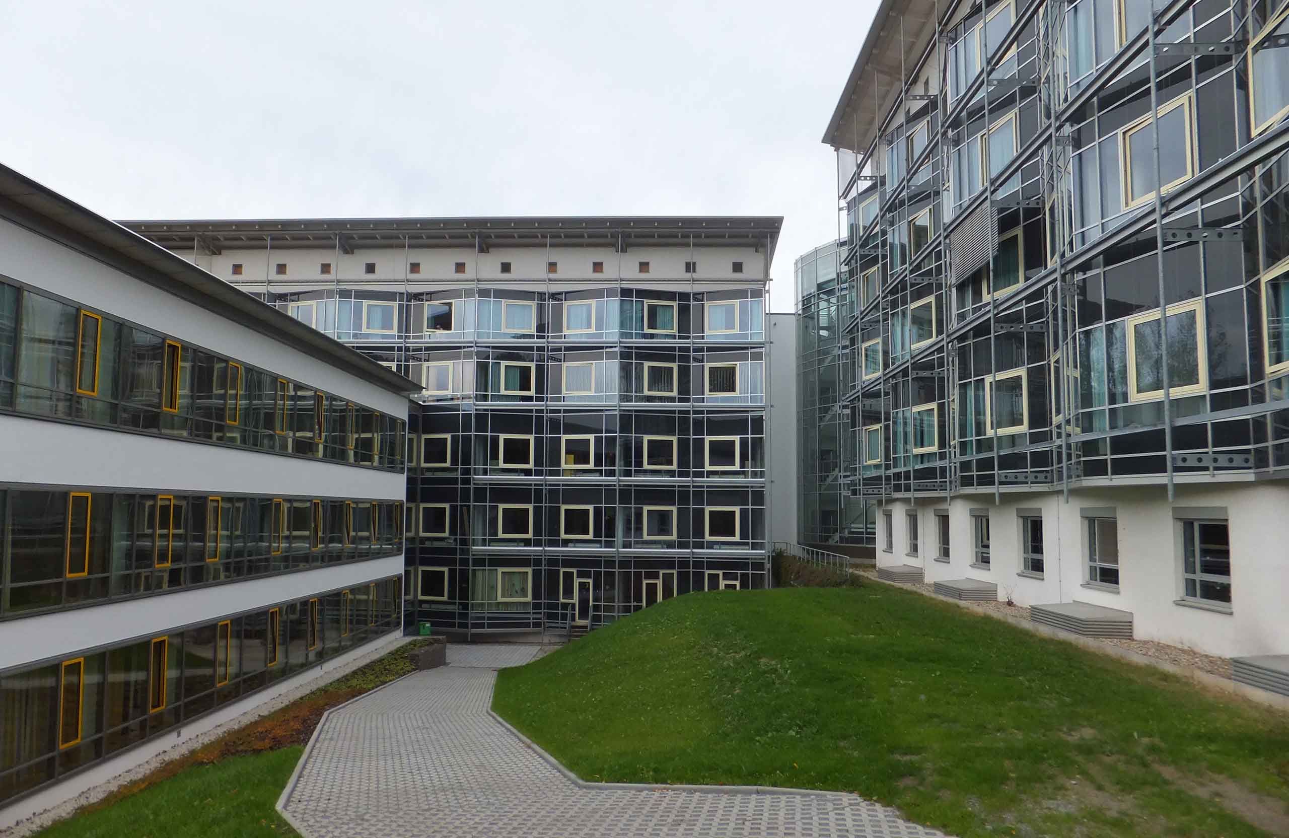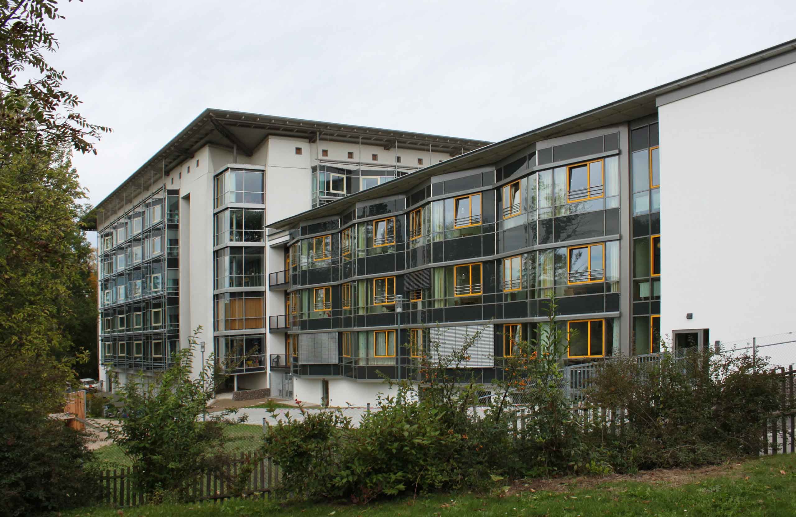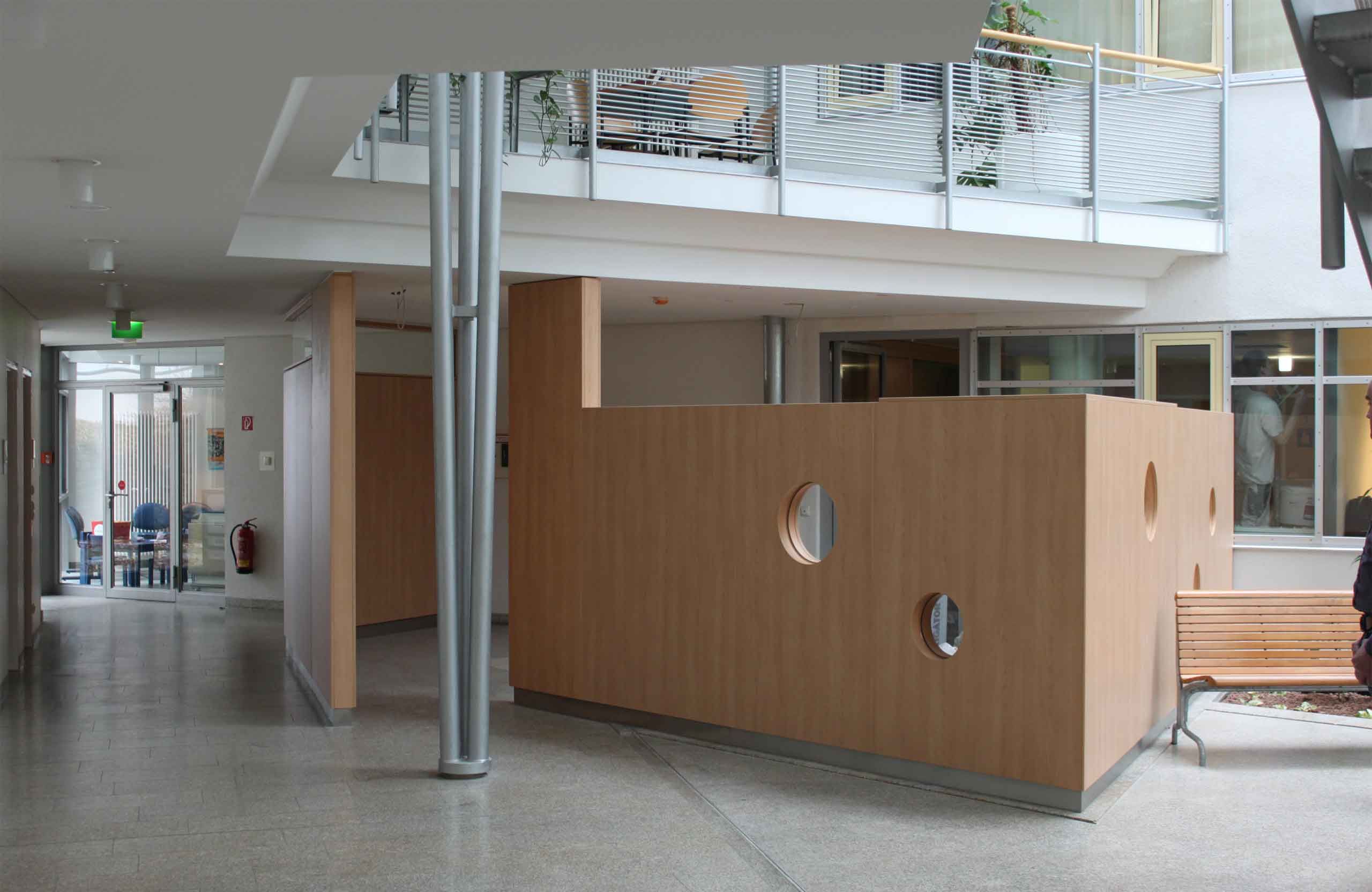 Die Anbindung konnte unmittelbar an den jeweiligen Bestandsstützpunkten auf kurzem Weg erfolgen. Alle Patientenzimmer sind entweder nach Osten oder nach Süden mit Aussicht auf die Stadt Annaberg orientiert, die Funktionsräume sind zum Innenhof ausgerichtet.