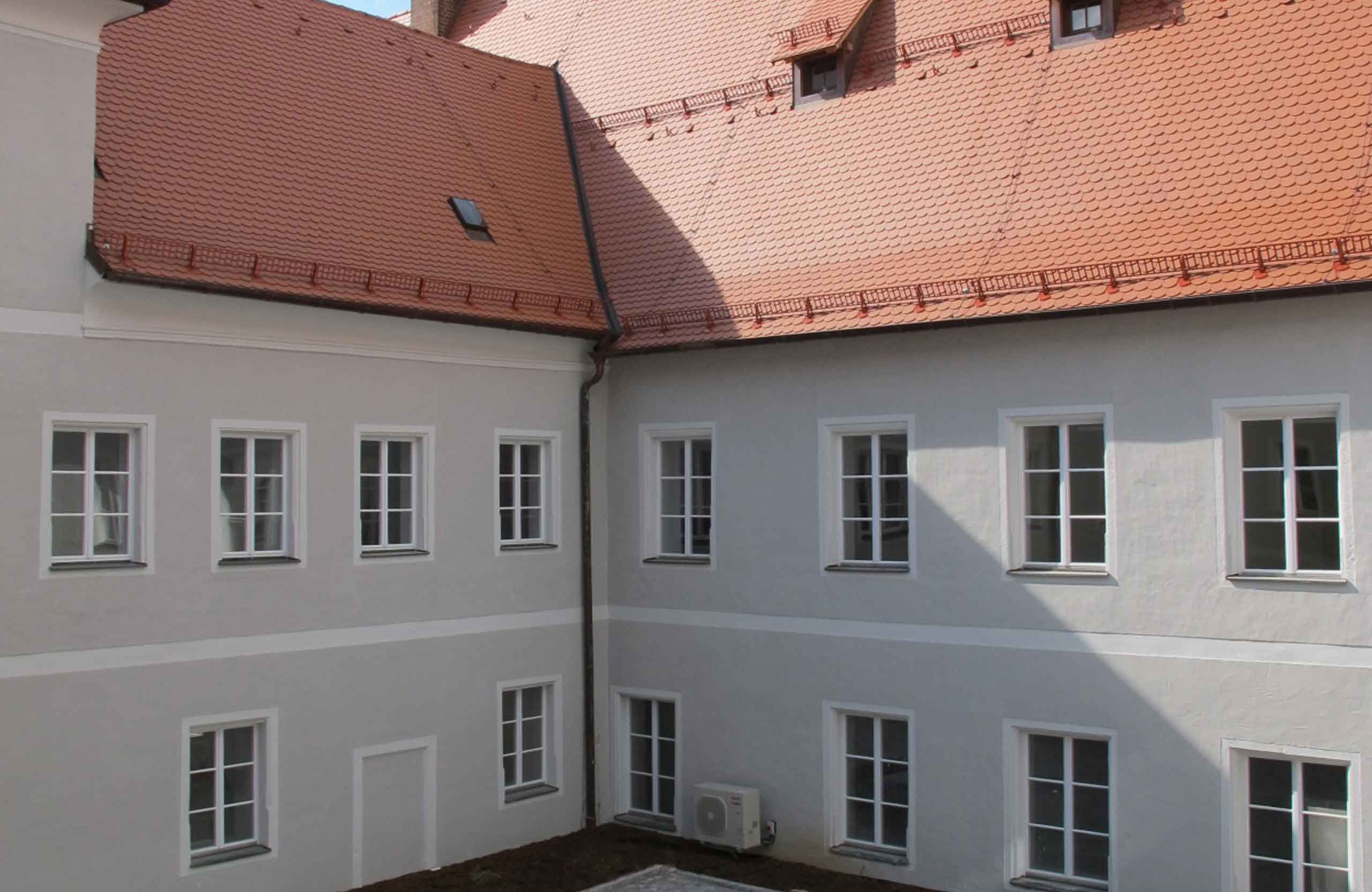 Der nördliche Teil besteht aus einem historischen Kreuzgang aus dem 14. Jh. mit seinen angegliederten Räumen. Dieser Teil ist zweigeschossig und mit einem Satteldach gedeckt. An der nördlichen Grenze ist direkt die Dominikanerkirche angebaut. Sowohl im EG als auch im OG bestehen Zugangsmöglichkeiten zur Kirche. Der Gebäudeabschnitt im östlichen Teil (Ölberg) ist dreigeschossig mit einem Mansarddach. Der nach Süden orientierte Gebäudeteil unterteilt sich in einen zweigeschossigen Teil mit Satteldach und einen viergeschossigen Teil (Sternwarte mit Dachterrasse), der mit einem Mansarddach gedeckt ist. Der Bereich des Kreuzgangs im EG mit den anschließenden von der Kirche genutzten Räumen (Sakristei, Paramentenraum, Albertus-Magnus-Kapelle, Schatzkammer, Werkstatt und Lackierraum) sowie die Räume der Sternwarte sind von den Arbeiten ausgeschlossen. In diesen Bereichen werden nur die durch die Schnittpunkte der neuen Heizungs- bzw. Elektroverteilung sowie die sich aus dem Brandschutzkonzept ergebenden Maßnahmen durchgeführt. Selbes galt für den Bereich OG1 und OG2 über dem Kreuzgang. Die Büroräume wurden für die Regierung der Oberpfalz, speziell für das Gewerbeaufsichtsamt und die Abteilung 8, saniert. Die Planung wurde mit dem Sachgebiet Zl der Regierung abgestimmt. Das Gebäude stammt aus dem 14.-17. Jhd. und steht unter Denkmalschutz.