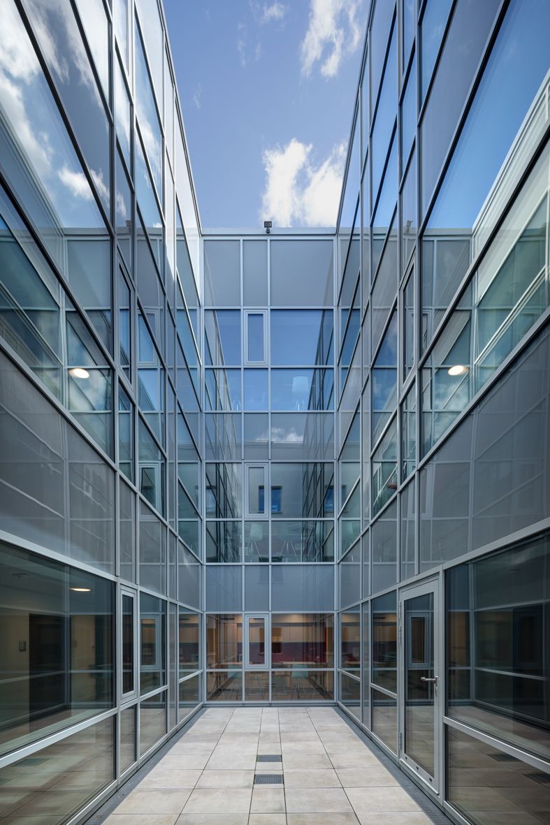 Die Erschließung des Hauptzugangs erfolgt unmittelbar von der LA14 her nahezu ebenerdig. Die Entwurfsplanung orientiert sich streng an den Vorgaben des Raum- und Funktionsprogramms und weist in 4 Geschossen eine Nutzfläche von insgesamt 3937 qm aus. Eine Unterkellerung ist nicht vorgesehen. Im EG befinden sich überwiegend Funktionsräume wie Registratur, Lager Technikräume, einige Büros sowie Hauptzugang mit Pforte und Foyer. Im 1. – 3. OG sind alle geforderten Büros, Besprechungsräume, Registraturen sowie WC-Anlagen, Teeküchen und Kopierräume ausgewiesen.