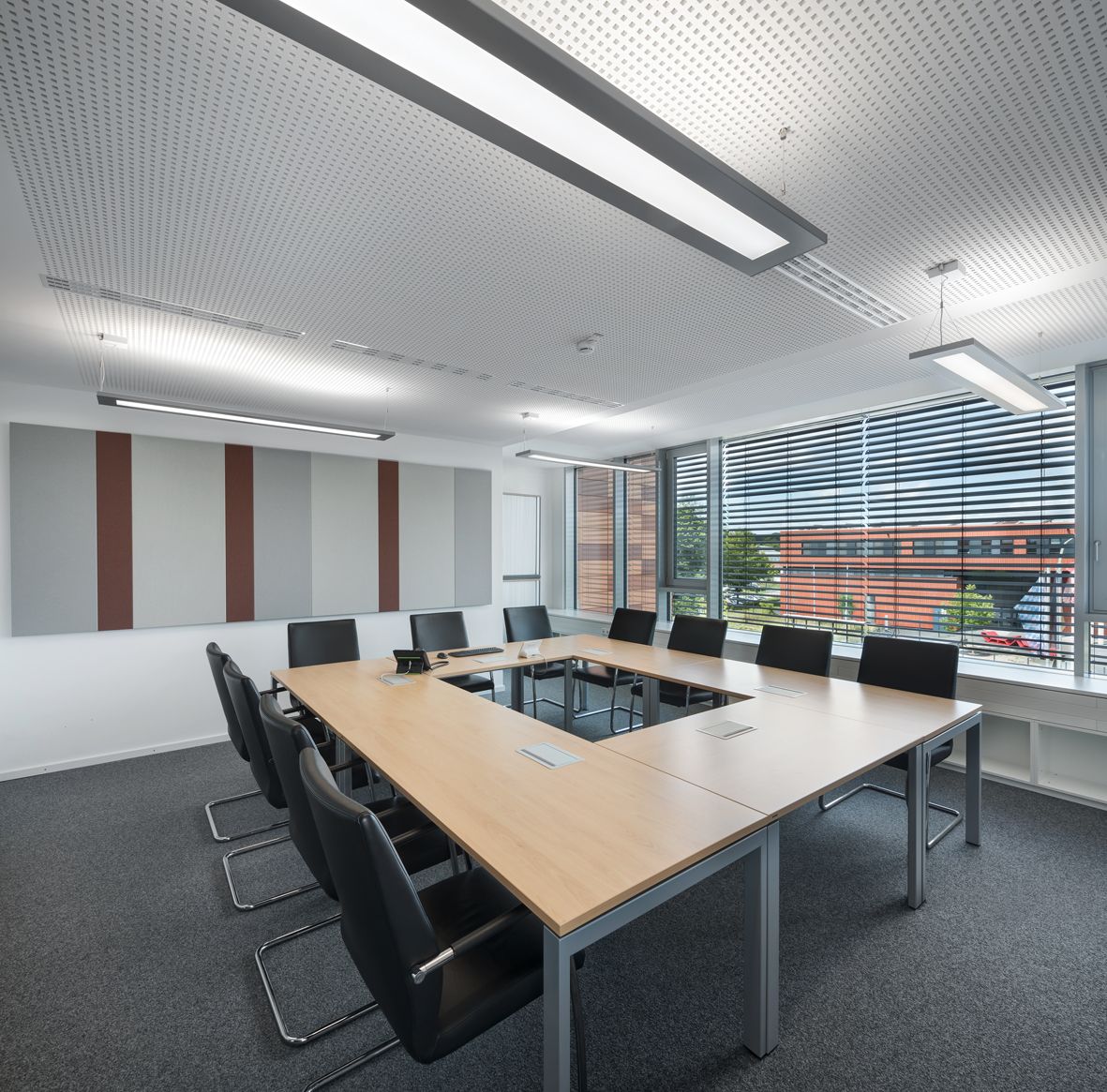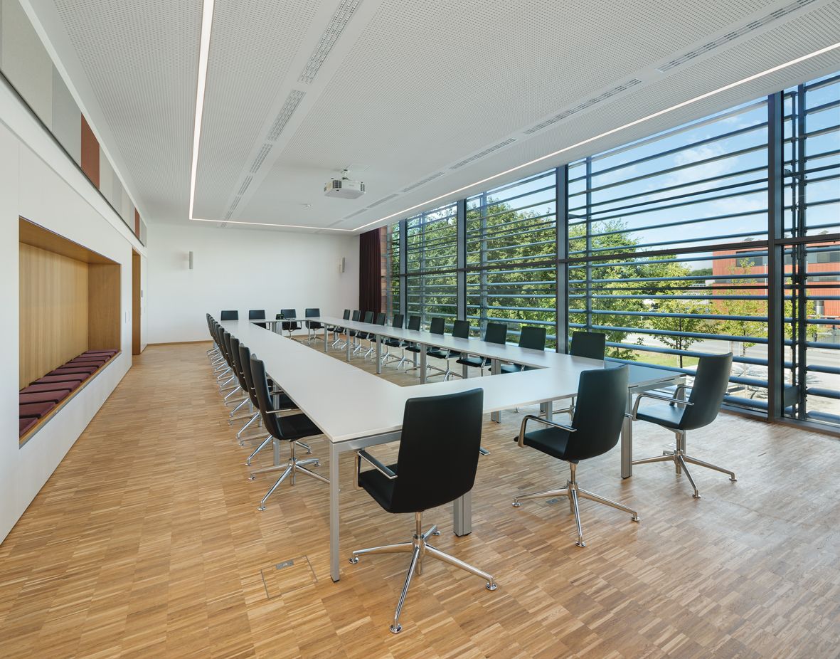 Das 1.OG nimmt den großen Besprechungsraum mit Garderobe, Teeküche und Stuhllager zusätzlich mit auf.